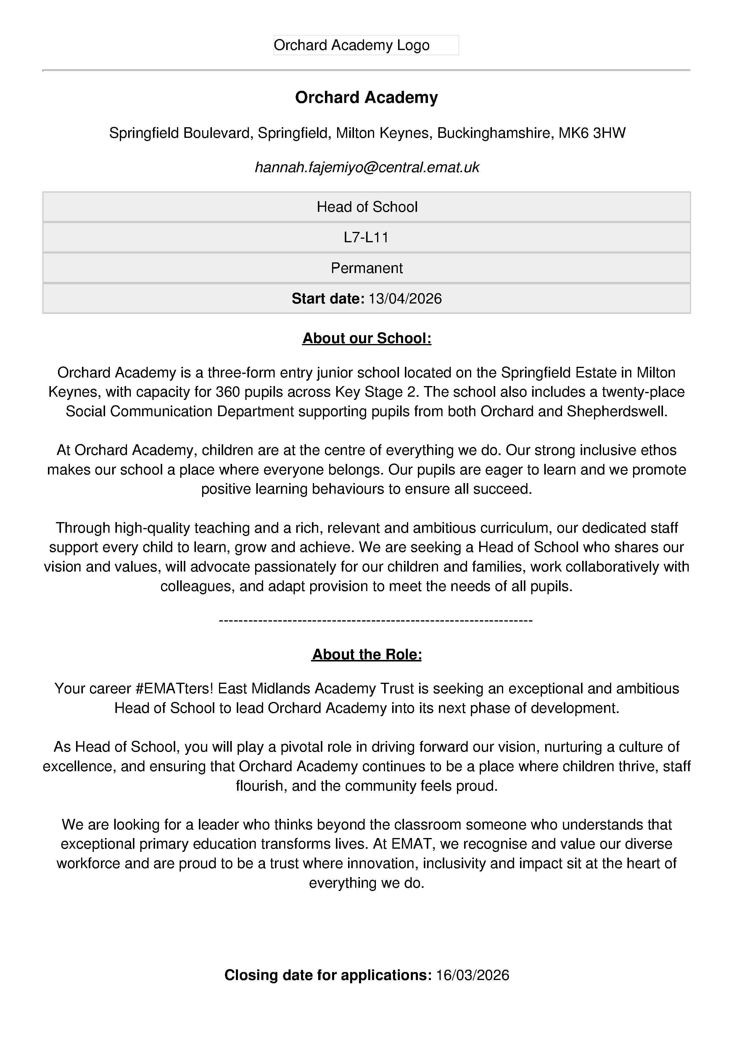 Orchard Academy - Head Of School